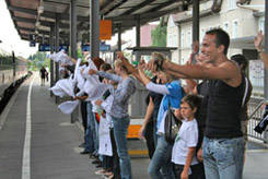 Friedrichshafen, 04. August 2008 - Unsere dreu Olympia-Vertreter sind unterwegs nach Asien. Gestern bestiegen sie - verabschiedet von Familienmitgliedern, Freunden und Vereinsmitgliedern in Friedrichshafen den Zug nach Frankfurt. Von dort geht es mit dem Flieger nach Korea ins Trainingslager.