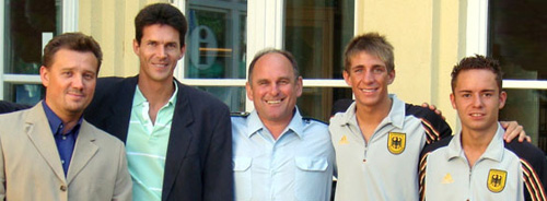 Sonthofen, 11.07.08 - Heute Vormittag empfing der erste Bürgermeister, Hubert Buhl, der Stadt Sonthofen die dort ansässige Sportfördergruppe der Bundeswehr, um ihre Olympiateilnehmer für 2008 nach Peking zu verabschieden sowie ihnen im Namen der Stadt Sonthofen viel Glück und Erfolg bei den Olympischen Sommerspielen zu wünschen. Mit dabei die zwei Häfler Sportsoldaten Daniel Manz und Boris Winkler, als auch die beiden Bundestrainer Waldemar Helm und Markus Kohlöffel, allesamt vom BSV Friedrichshafen.